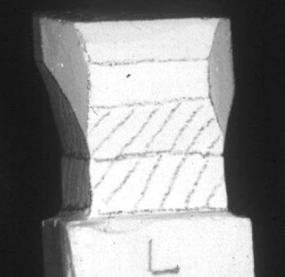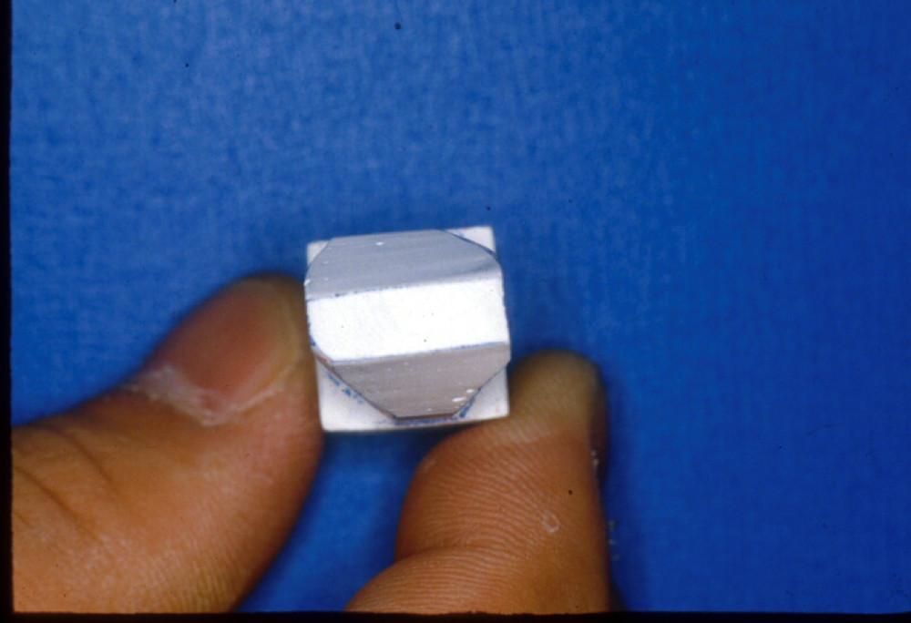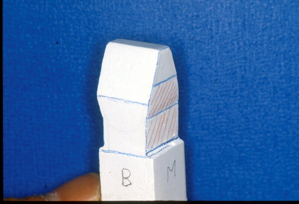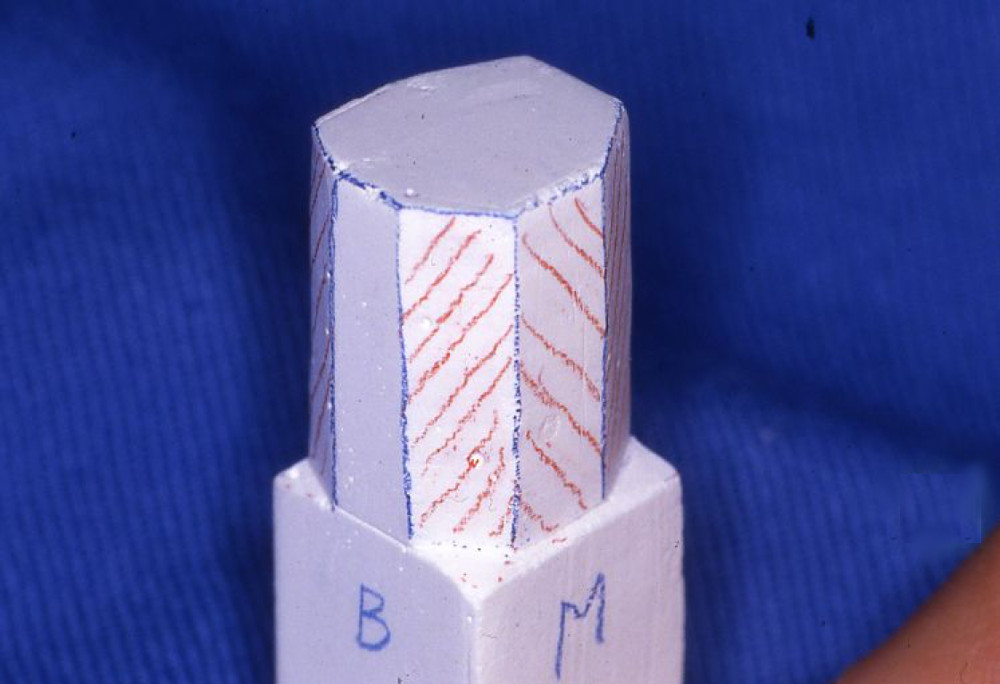 図2b.切り出しナイフを用いてワックス棒のカットを行った例