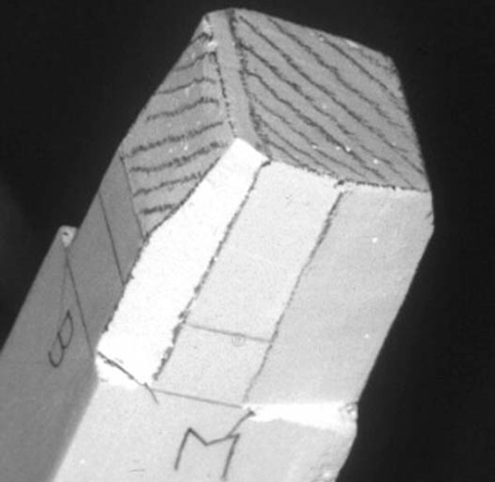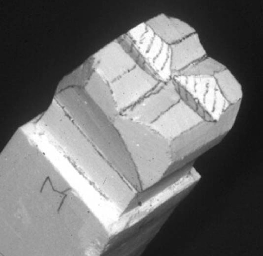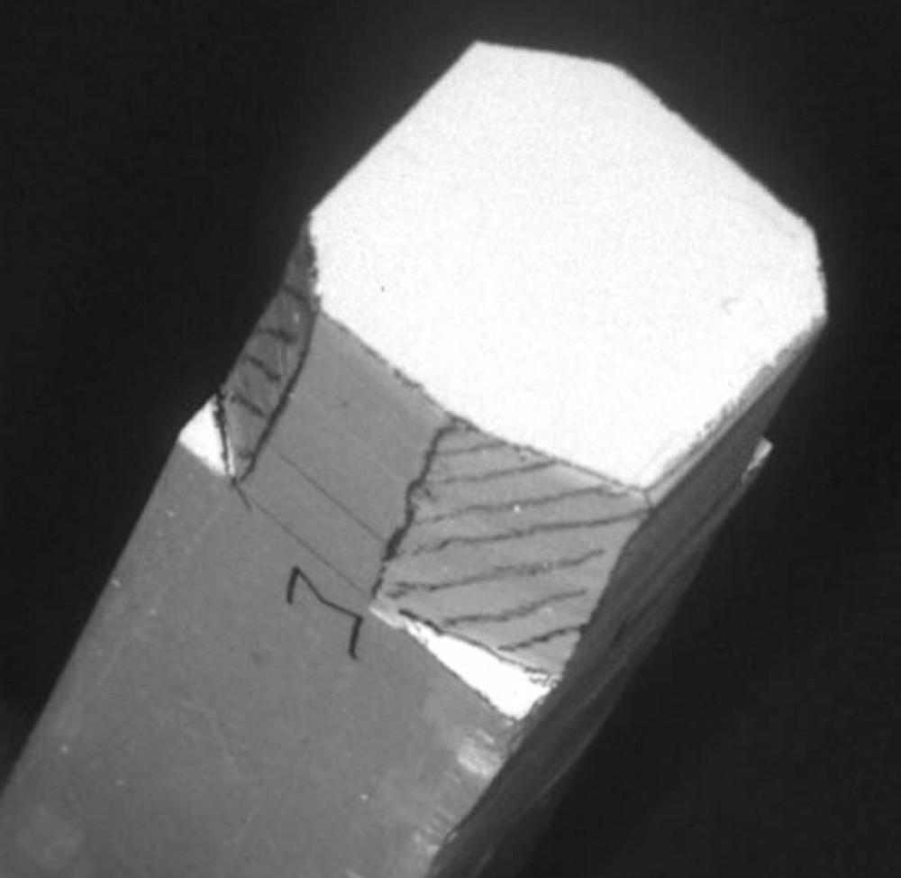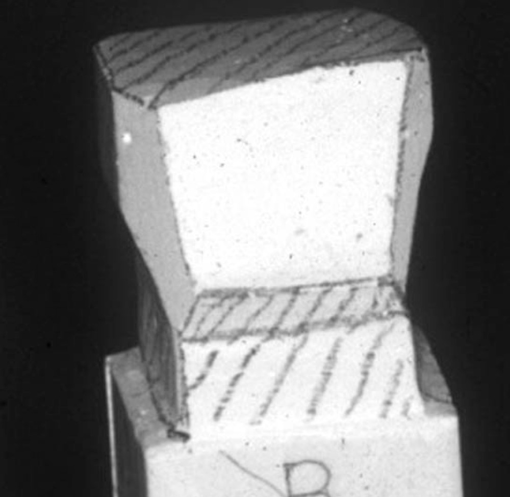 図2b.切り出しナイフを用いてワックス棒のカットを行った例