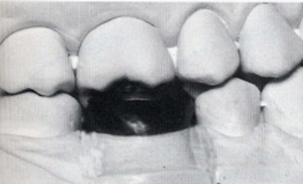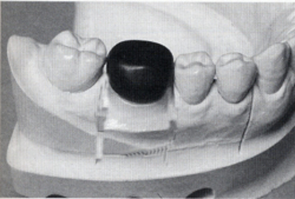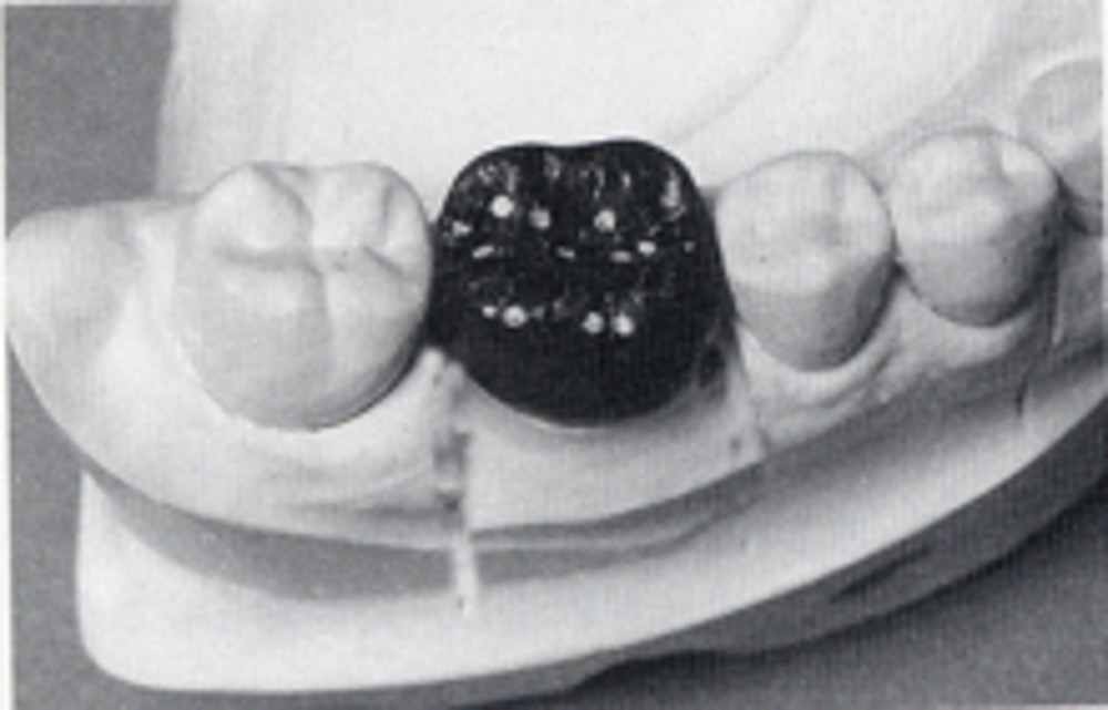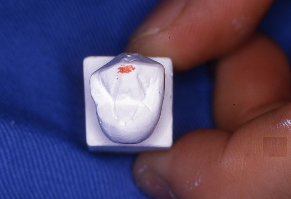 キャポンのワックス形成器(図6)を用いて、少量のワックスを盛り、溶かしたワックスの形をある程度整える。